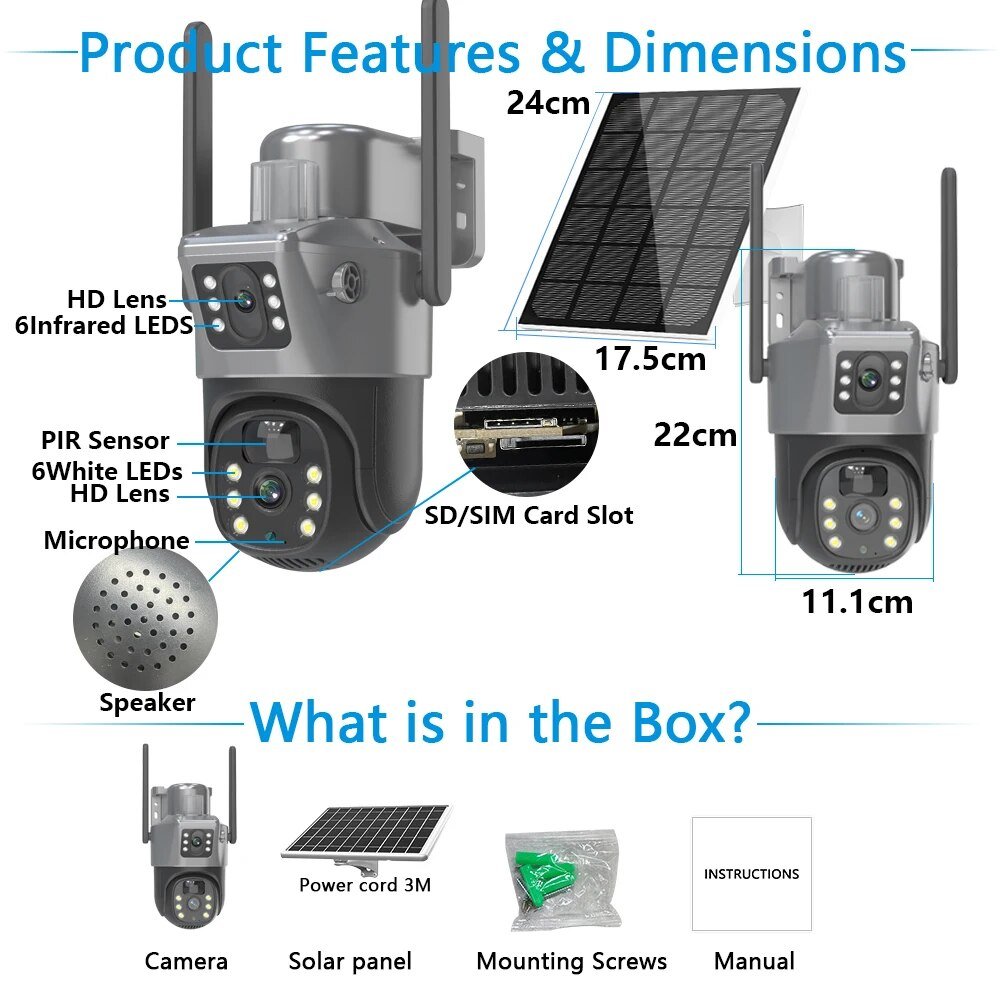 SOLAR CAMERA WITH TRIPLE CAMERAS